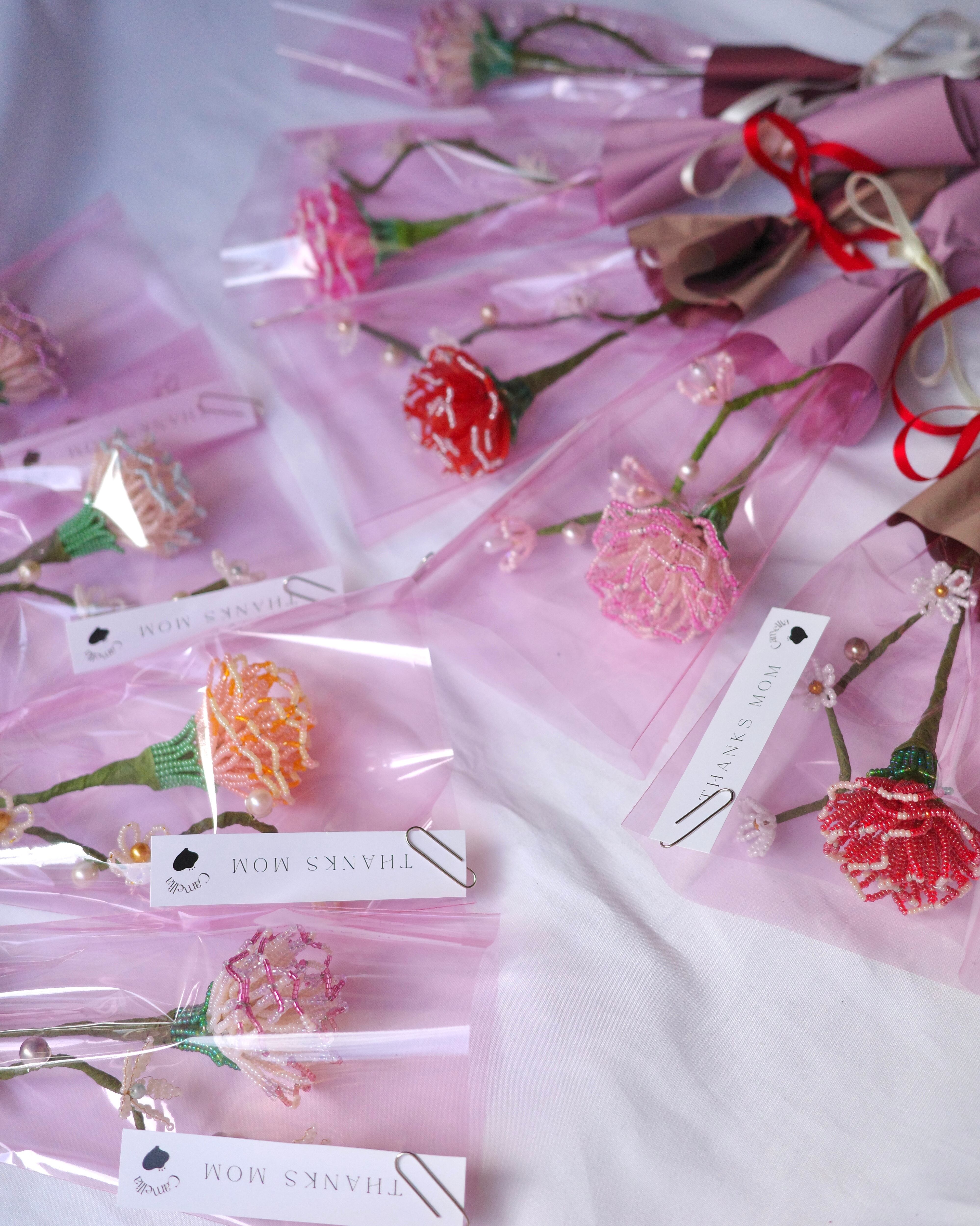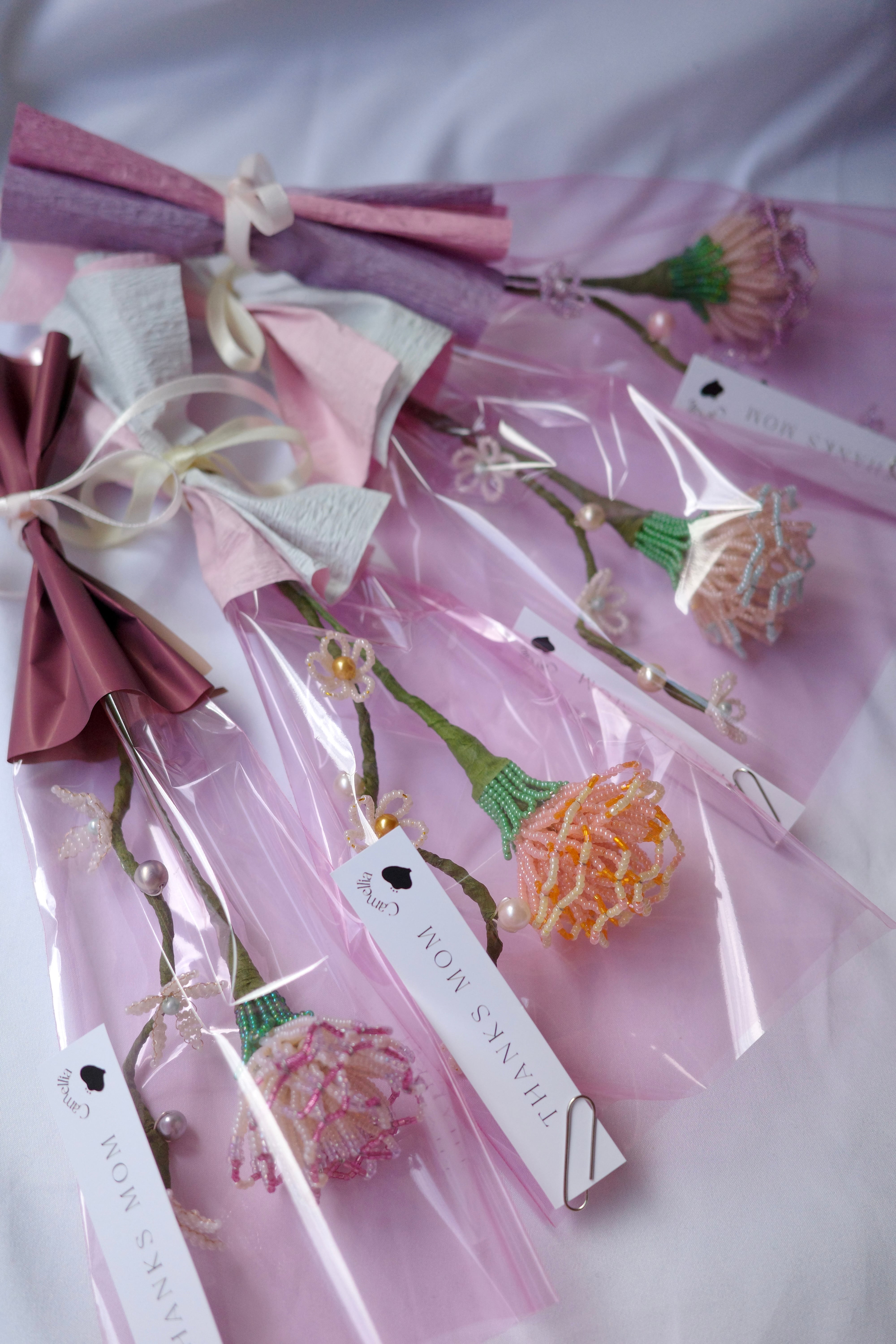 ※ビーズフラワーはデザイン上重心が上部(花びらの部分)にあるため花瓶等にさしてお使いの場合は重みによって転倒の恐れがあります。製品より重みのある花瓶をお選びいただくか両面テープなどで花瓶の底部を固定してお使いいただくことをお勧めいたします。尚、転倒によって花瓶を含めた家具家財を損傷した場合の補償はございません。
